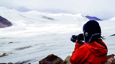 在冬克玛底冰川,记者拍摄冰川科考。 何锴摄/光明图片